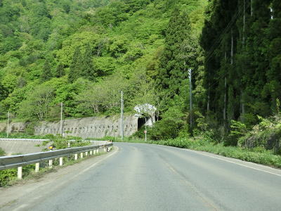 | 堺田の分水嶺で日本海側に向かって流れている明神川はかなり蛇行しているが、R47はカーブが少なく勾配も緩やかで非常に走りやすい。谷筋ではあるが開けているため薄暗さも一切感じない。 | ||