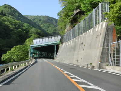 | 鳴子トンネルをくぐって大深沢橋を渡った後に鳴子峡の出入口の交差点を通過する。出入口と言っても駐車場であり林道等でさらに奥深く入る必要はない。渓谷を通っているものの道路状況は良好で走りやすい。 | ||
