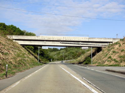 | 大堀駅の北を通り過ぎた直後に山形r325志茂交差点を通過する。駅のすぐ傍を通っているが、北側には出入口は設置されておらず町道で南に回り込む必要がある。左、右とS字状に曲がりながら大堀こ線橋を渡った後に山形r316交差点を通過する。r316の一部はR47の旧道と思われる。 | ||