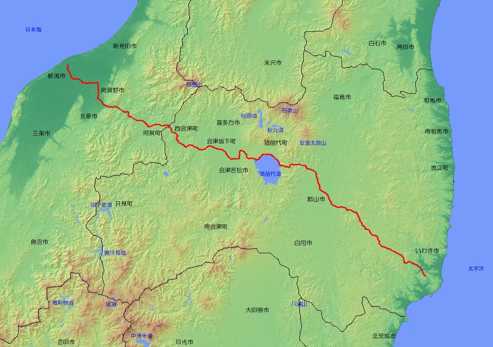 | 主な経由地 | 福島県いわき市〜郡山市〜猪苗代町〜会津若松市〜会津坂下町〜西会津町〜 〜新潟県阿賀町〜阿賀野市〜新潟市 |