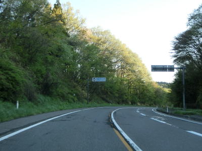 | 郡山市に入ってからは下り勾配になる。緩やかな勾配だが、上りとなるいわき方面車線には登坂車線が設置されている。対面2車線道路に戻った後にやや急な左カーブを曲がって福島r13田母神交差点を通過する。 | ||