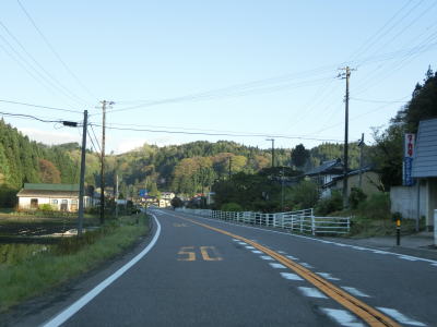 | 55.この交差点を左折すると平田村役場に行く事ができる | 56.交通量の少ない2車線道路を快走 | 57.福島r285遅沢交差点 |