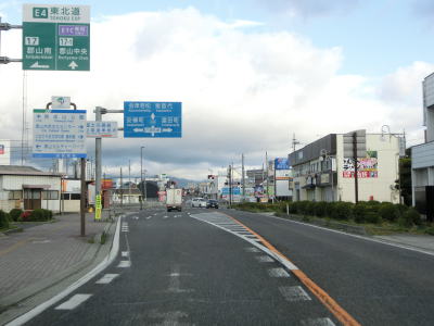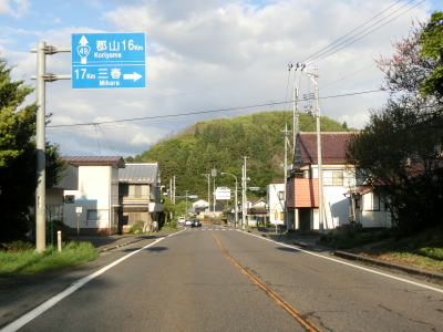| 道の駅からもほぼ平坦な直線道路が続いている。概ね走りやすい道路状況だが、二桁幹線国道としてはやや貧弱な道路状況と言えるかもしれない。緩やかな勾配を上って右カーブを曲がると郡山市に入る。 | ||