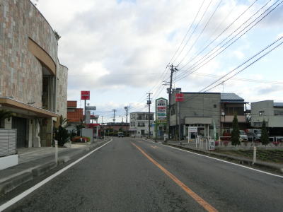 | 村道が交差している右カーブを曲がるが、左折して村道を東へ進むと平田村役場に行く事ができる。平田工業団地の東側を通り過ぎて福島r285遅沢交差点を過ぎると沿線の建物が増え、その中には商業施設もある。 | ||