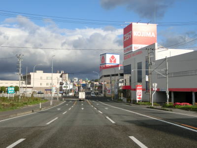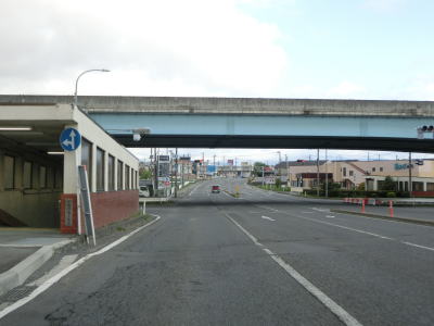 | 桑野3交差点からは車線が増えて片側2車線道路になる。緩やかな左カーブを曲がった後にR4下亀田・中亀田交差点を通過する。東西と南北の幹線国道の交差点とあって立体交差化されており、R4が亀田大橋で交差点の上を通過している。 | ||