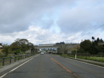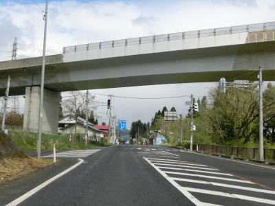 | 谷筋を出て視界が開けた後に新長谷川橋を渡る。前方に見えているE49常磐道の長谷川橋が近付いてきてその下でR400黒沢入口交差点を通過する。この交差点はR400の終点である。 | ||