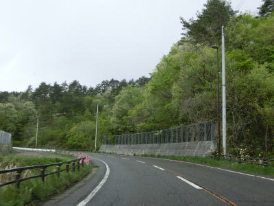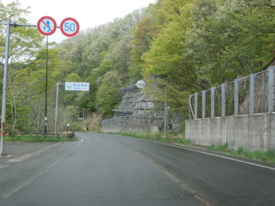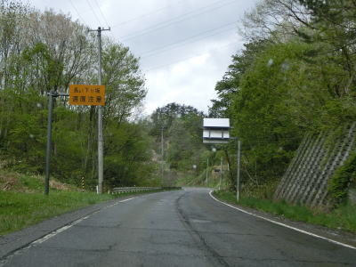 | 福島r151との交差点を2ヶ所通過してなおも勾配を上り続ける。崖側が拡幅されている場所もあるが走行日時点では道路状況には何ら影響していない。チェーン着脱場を兼ねた駐車帯を2ヶ所通過した後に延長300m程度の登坂車線区間を通過する。 | ||