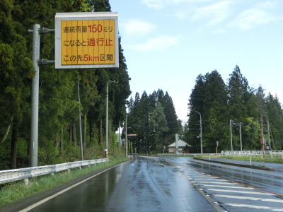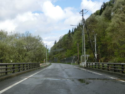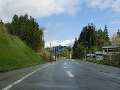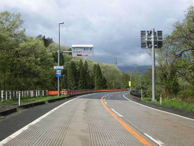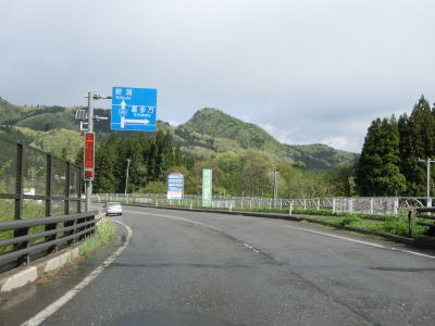 | JR磐越西線から少し離れて阿賀川に近付いた後に左カーブを曲がって再びJR磐越西線を新村こ線橋で越える。跨線橋の勾配を下り切ると福島r370交差点を通過し、その直後に閉鎖用ゲートを通過する。ここから5kmは連続雨量が150mmを超えると通行止になる。 | ||