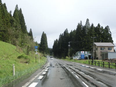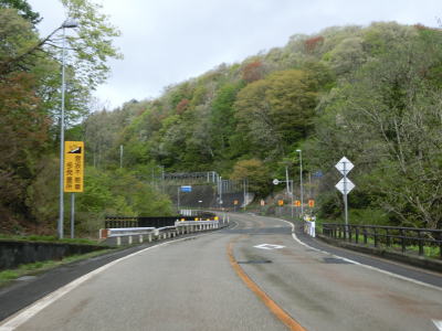 | 福取トンネルを出ると5kmに渡るなだれ土砂崩壊危険地帯が始まる。さらに雨量通行規制区間に入るがこちらの延長も5kmである。八木山集落の北を通り抜けるが、集落を通り抜けている町道が旧道と思われる。 | ||