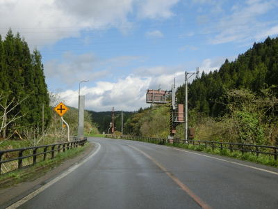 | 八ッ田集落の出入口に当たる町道との交差点付近からは上り勾配となり、程なくして延長1.1km程の登坂車線区間を走る。登坂車線が終わった直後に福取トンネルに入り、下り勾配に転じる。 | ||