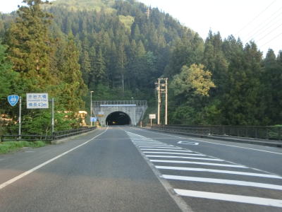 | 山裾を通る上り勾配の2車線道路を走るが、この区間も最大勾配が5%で登坂不能車が多発しているようである。福島r338交差点を通過して少し走ると車トンネルをくぐる。車峠を越えている旧道は廃道と化しており車両での通行は不可能と思われる。 | ||