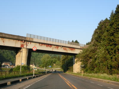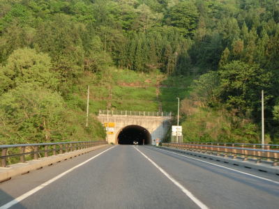 | 横風に注意を要する西高架橋を渡るが、その南にはE49磐越道の西ノ沢川橋が架かっている。西高架橋を渡り終えて緩やかな勾配を上っていると赤岩大橋を渡って赤岩トンネルに入る。赤岩トンネルを出て小花地大橋で揚川ダム湖の上を通ってから黒岩トンネルをくぐる。似たような名称のトンネルが続くが、前者の延長は2661m。後者のそれは398mと結構な差がある。 | ||