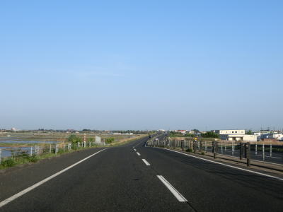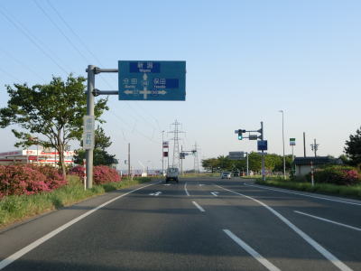 | 321.新潟r4横越上町交差点 | 322.盛土の上を快走 | 323.見通しの良い快走路 |