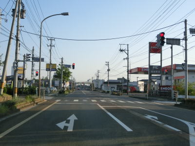 | 安野町交差点から少し走ると山口交差点を通過する。交差点周辺にのみ中央分離帯が設置されており、接続している市道はおそらくR49の旧道であろう。山口交差点からも家屋が建ち並ぶ間を通っており、センターライン付きの2車線道路ながら狭苦しさを感じる。 | ||