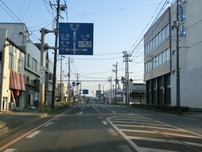 | 阿賀野市の市街地で新潟r470学校町交差点を通過してから市道との阿賀野警察署前交差点を通過する。阿賀野警察署前交差点は阿賀野市役所の出入口でもある。さらに北上すると新潟r271・r303中央町交差点を通過する。 | ||