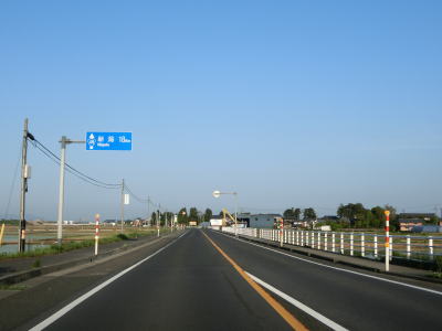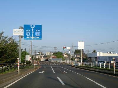| R290・R459馬下橋東詰交差点を過ぎてすぐにR290の49号高架橋の下を通る。その後は引き続き阿賀野川の右岸を走っており、平坦でカーブもほとんどなく走りやすい道路状況である。緩やかな右カーブからは阿賀野川を離れて北西の方角に進む。 | ||