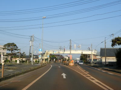 | 中央町交差点を過ぎて左カーブの差し掛かるとR459・R460北本町交差点を通過して再び3国道重複区間となる。カーブが終わると上り勾配になってJR羽越本線の上を通過し、下り切った所でR459・R460・新潟r15安野町交差点を通過して約500mの短い3国道重複区間が終わる。 | ||