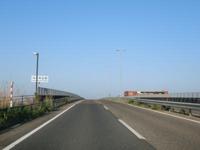 | 阿賀野川に架かる新横雲橋を渡ると新潟市江南区に入る。橋を渡り終えた直後に新潟r17との木津ICを通過して緩やかな右カーブを曲がる。r17からの側道が合流するとそれがそのまま左側車線となって、以降は片側2車線道路になる。 | ||
