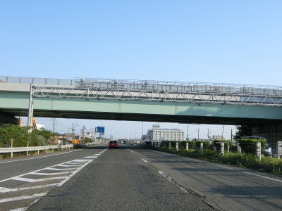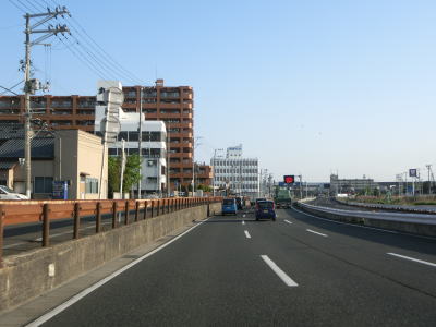 | 盛土からの勾配を下って新潟r4との平面の横越上町交差点を通過するが、再び上り勾配となって盛土の上を走る。遮音壁はなく360度周りの風景が見えるため見通しは非常に良い。多くの市道が交差しているが全てカルバートの中を通っているため交差点は存在しない。 | ||