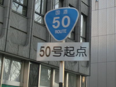 | 群馬県庁や前橋市役所に近いR17・R291本町1交差点がR50の起点であり間に栃木県を挟んで茨城県水戸市に向かう。4車線のR17から同じく4車線のR50に入る。交差点には「50号起点」の補助標識が付いたおにぎりが設置されている。 | ||
