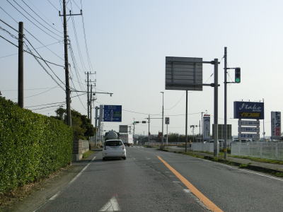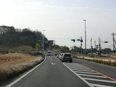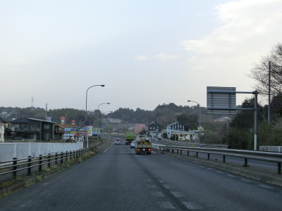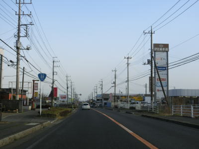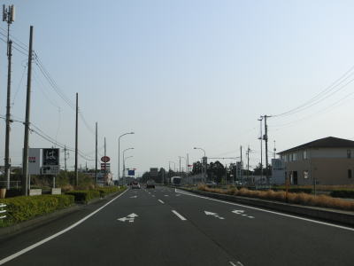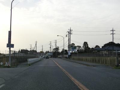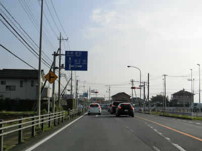 | 沿線にカーディーラーが増えてきた辺りで車線が増えて片側2車線道路になって市道との交差点を通過する。この市道は香取市の市街地のパスする事ができるが、案内標識には香取神宮しか表記されていない。下り勾配の山之辺橋を渡ると造成された住宅地の東側を通る。 | ||