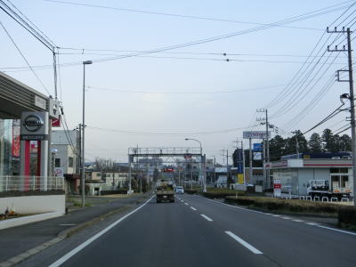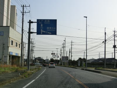 | 左にカーブして緩やかな勾配を下ると潮来市の中心部に差し掛かって沿線の建物が増える。市道との潮来駅入口交差点を通過してすぐにJR鹿島線のガードをくぐる。潮来市役所の前を通った後に辻交差点を通過する。案内標識には矢幡方面の道路に茨城r187のヘキサが表記されているが、茨城r50との交差点までの約2.2kmの区間は市道に降格しているはずである。ヘキサが残っているという事は最近の話かと思いきや、実は17年前の2008年らしい。 | ||