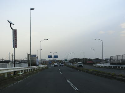 | 鉄道の高架橋をくぐって以降は上り勾配の対面2車線道路を走る。カーブは多いものの緩やかなものばかりなので走りにくさを感じる事はない。野毛平工業団地入口交差点を過ぎて少し走ると十余三第一橋を渡る。橋の下は河川ではなくE51東関東道が通っている。十余三第一橋以降はアップダウンはなく平坦でカーブも少なくなる。 | ||