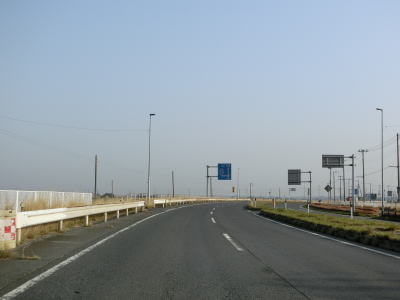| ごく緩やかに下った先で十余三トンネルをくぐる。下ってから入るトンネルという事からも想像できるかもしれないが、上には成田国際空港のB滑走路がある。トンネルを出てすぐに千葉r115交差点を通過し、さらに少し走ると十余三第二橋を渡る。第一橋と同様に下にあるのはE51東関東道である。 | ||