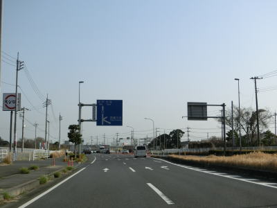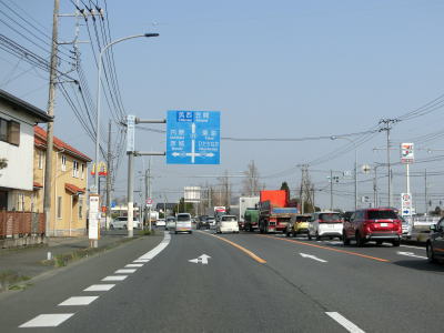 | 塩崎交差点からは交通量の多い片側2車線道路を走り、程なくしてE51東水戸道の水戸大洗ICを通過する。ここで右側車線がインターチェンジへの右折専用車線になってしまう。 | ||