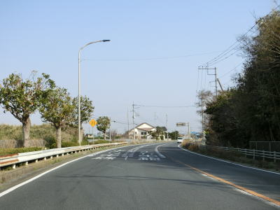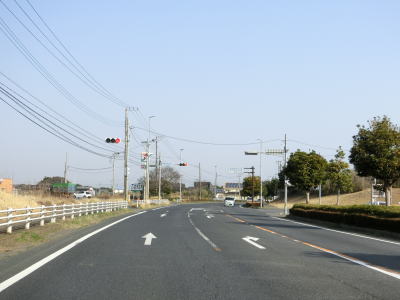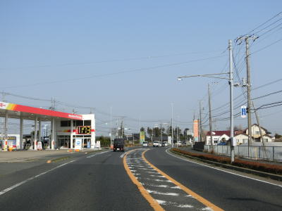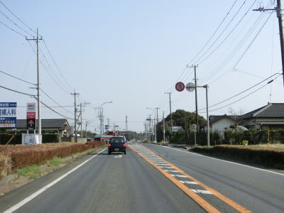 | 途切れる事なく続く家屋の間を走っていると鹿島灘海浜公園入口交差点を通過する。2車線快走路をさらに北上すると茨城r182大竹交差点を通過する。左折してr182を西に進むと鉾田市の中心部に行く事ができる。 | ||