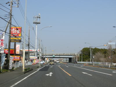 | それなりの交通量はあるものの信号機付きの交差点がすくないため流れは良い。大野潮騒はまなす公園の東を通り過ぎてからさらに走ると茨城r186鹿嶋市役所大野出張所入口交差点を通過する。道路工事が行われていたが、交差点付近のみである事から右折車線の設置工事と思われる。 | ||