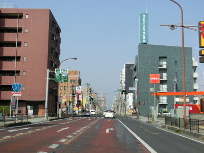 | 142.原子力機構南門前交差点 | 143.原子力機構の東を走る | 144.沿線の建物は少ない |