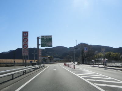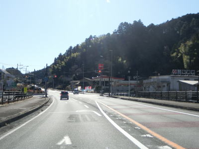| 富沢ICからは平坦な直線道路を快走する。おそらく川の反対側を並走している山梨r801が旧道と思われる。道の駅「とみざわ」に隣接している山梨r801南部町役場入口交差点を通過する。交差点の名称からしてr801を入った所に町役場があるように思えるが、役場はr801の反対側の川寄りにある。 | ||