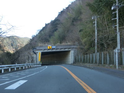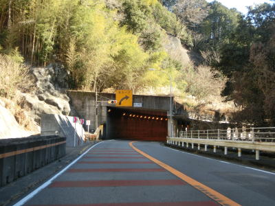 | 南部町役場入口交差点を過ぎてすぐに新福士川橋を渡り、少し走ると旧道らしき町道との交差点を通過する。R52では数少ない登坂車線(南向きでは唯一)が終わると切久保洞門をくぐる。 | ||