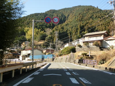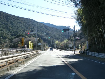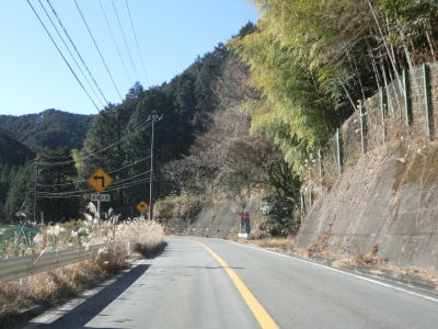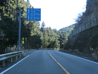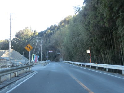| ランプ橋をくぐった後に逢坂集落を通り抜けてからE1A新名神の本線の上倉橋の下を通る。しばらく集落が途切れた後に坂本集落に入る。蛇行している小河内川を何度か渡りながら集落を通り抜けていると舟場トンネルをくぐる。 | ||