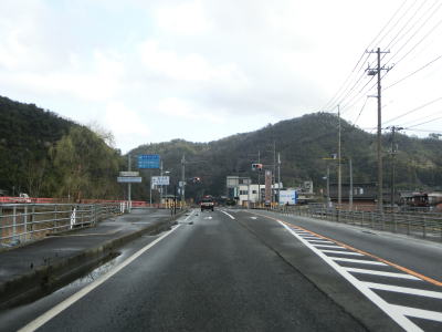 | 智頭トンネルを出てすぐに鳥取市に入る。智頭トンネルの近くに境標識が立っているためトンネルが市町境かと思ってしまうが市町境ではない。JR因美線と千代川を挟むようにして川沿いを快走する。緩やかな上り勾配の左カーブを曲がると新川中橋で千代川を渡って左岸に移る。 | ||