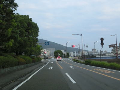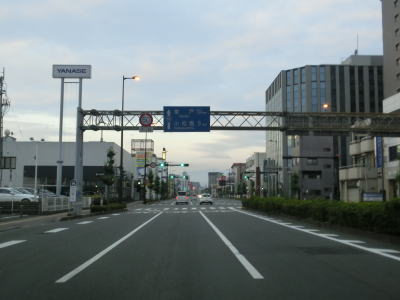 | 徳島県庁の西、新町川に架かるかちどき橋の南詰の交差点がR55の起点である。県庁に近接している交差点とは言え名称は特に付いていないようで、また東西に交差している道路が市道とあって国道側には案内標識が設置されていない。しかし東に延びる市道には設置されている。この交差点はR11とR55の起点かつR28とR195の終点であり、橋の南西には道路元標が設置されている。北にR11とR28が、南にR55とR195が延びている。 かちどき橋南詰交差点からの勾配を下り切ると徳島r120・r136とのかちどき橋交差点を通過する。左折・右折車線がそれぞれ1本ずつあり、直進車線は3本も設けられている。交差点を過ぎても車線が減少する事もなく片側3車線道路のまま南の方角に進む。 |