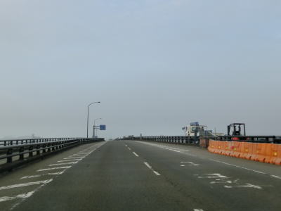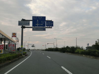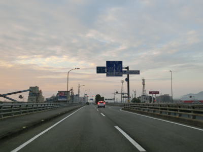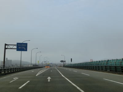 | 車線が減少してすぐにS字カーブを曲がるが、これは多車線化工事に伴うカーブのため元々は直線だったと思われる。建設中の橋の横を走っているともう一度S字カーブを曲がって緩やかな勾配を上ったん後に那賀川大橋を渡る。現在の橋の上流側に新たな橋が架橋中であり、既に橋桁まで乗っているようであった。那賀川大橋の南で徳島r191への側道が分岐する。 | ||