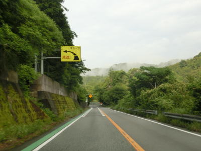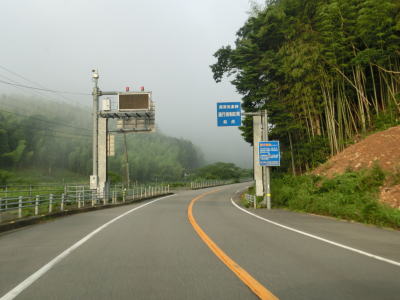 | 福井r25交差点の直後に雨量通行規制区間の起点を通過する。これは湊橋の南詰にあった予告標識が示していた規制区間である。雨量通行規制区間に入ったとは言え、勾配は緩やかで道幅が狭い訳でもない。それどころか両方向ともにゆずり車線が設置されている。 | ||