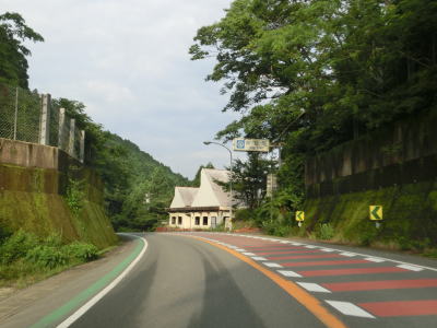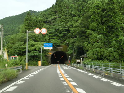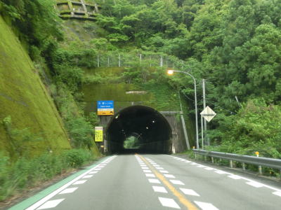 | 上り勾配の2車線道路をさらに走っていると鉦内トンネルをくぐる。このトンネルの北側坑口の西に福井ダムがあるのだが、道路上から見る事はできない。福井トンネルからも上り勾配が続いており、しばらく走ると福井トンネルをくぐる。鉦内トンネルから福井トンネルにかけての区間はダム湖畔を走っているのだが、湖面は見えず湖畔を走っているイメージはほとんどない。 | ||