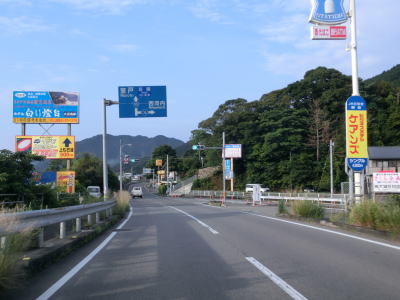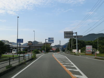 | 徳島r25交差点を通過した直後に道の駅「日和佐」を通過する。道の駅の向こう側にはJR牟岐線があり南東に日和佐駅がある。道の駅から程なくして緩やかな勾配を上って牟岐線をオーバーパスして右にカーブしながら勾配を下る。奥潟川に沿って走っていると徳島r147交差点を通過する。このr147は海岸線に近い少し高い位置を走っており、南阿波サンラインと名付けられて元有料道路である。 | ||