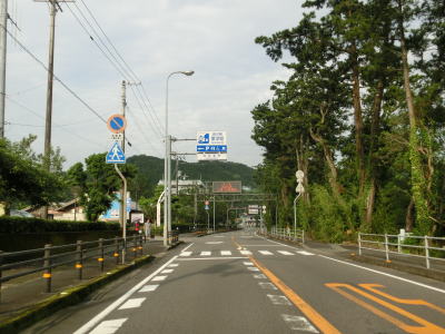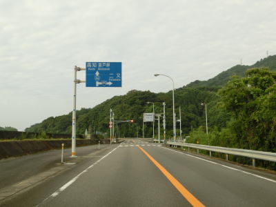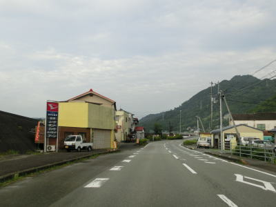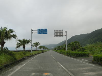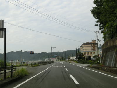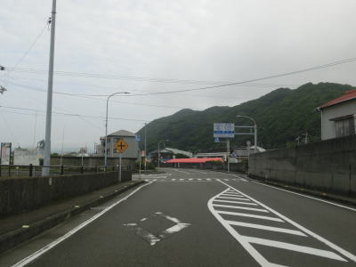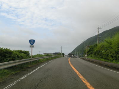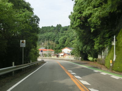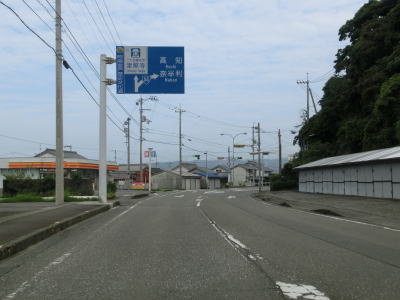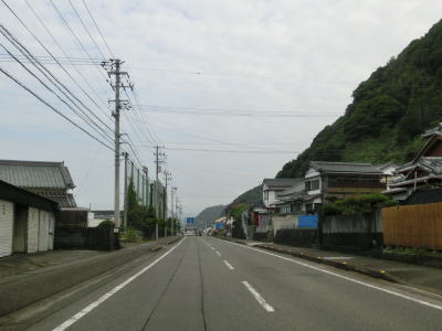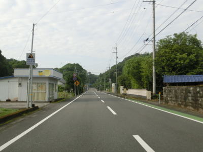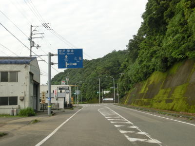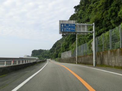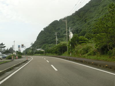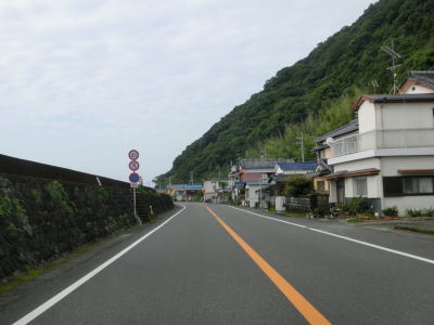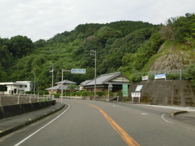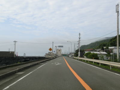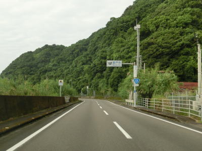 | 上り勾配の2車線道路を走っていると甲浦トンネルをくぐって下りに転ずる。左カーブを曲がった先で集落に差し掛かるが、その手前から“津波浸水想定区間”に入る。東洋町役場のある集落で、海岸はサーフビーチと名付けられている事からも分かるとおり、サーフィンのメッカとなっているようだ。そのため民宿が多く、またサーフボードを乗せた車も少なくなかった。 | ||