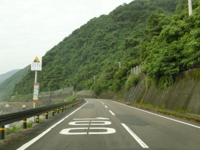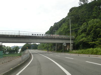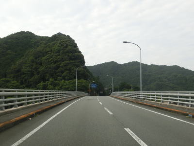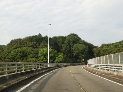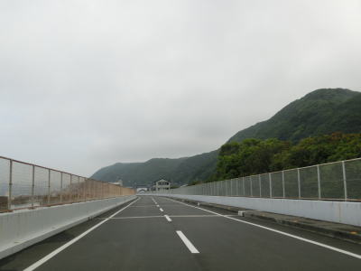 | 東洋町に入ってすぐに船倉橋、甲浦大橋、浅宇津橋を連続で通過する。どの橋も河川を渡ると言うより谷筋もしくは海の上を通っており、そのためかなり高い位置に架けられている。そのせいかどうかは不明だが、船倉橋には片側のみ、他の2つの橋には両側にフェンスが設置されている。 | ||