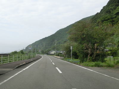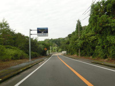 | 津波浸水想定区間のシーサイドルートを淡々と走っていると想定区間の終点を通過するが、僅かに標高が少し上がる程度で特に海から離れる訳でもない。標高15m程度を海岸線に沿ったカーブの多い2車線道路が続く。 | ||