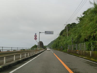 | 異常気象時通行規制区間に入って緩やかな勾配を上っていると伏越ノ鼻の根元でやや急な右カーブを曲がる。海岸線に沿って走っているが標高は10m程あり非常に眺望が良い。ただ、海に近いとあって津波浸水想定区間に指定されている。 | ||