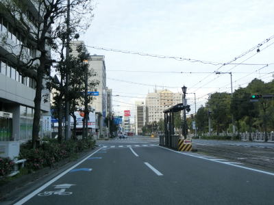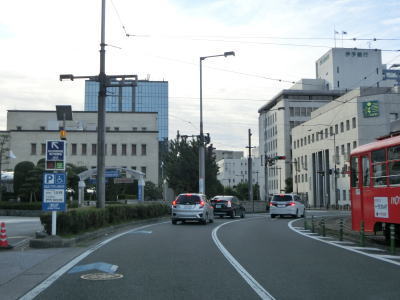 | 4.R196西堀端交差点を左折 | 5.西堀端交差点以降は片側3車線 | 6.伊予鉄道郡中線 |