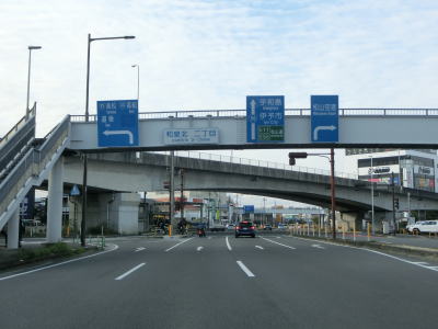 | 7.「高知120km 宇和島91km 伊予市10km」 | 8.愛媛r16・r326和泉北交差点 | 9.松山環状線との和泉交差点 |