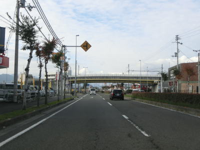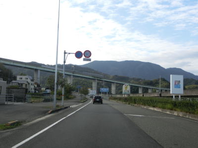 | 中山川を挟むようにしてJR予讃線と並走していると愛媛r324交差点を通過する。川沿いをさらに走っていると愛媛r224幟立交差点を通過してからE56松山道の立川橋の下を通る。その後は予讃線と松山道の間の川沿いを走る。谷筋とは言え勾配はほとんどなくカーブも緩やかなものが主なので走りにくさは感じない。 | ||