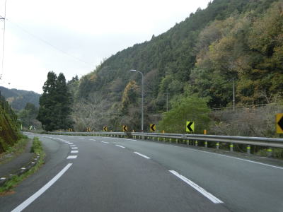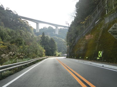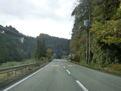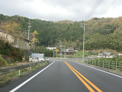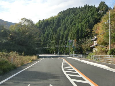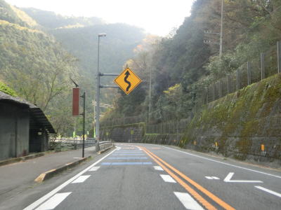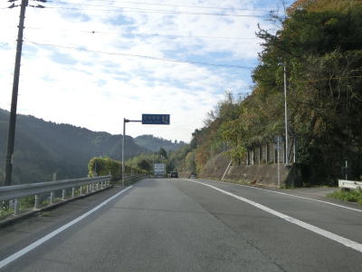 | 点在する集落を繋ぎながら中山川沿いを淡々と走る。トンネルの多いJR予讃線やトンネルと高架橋で構成されているE56松山道とは異なり、カーブが多くそのうちのいくつかはそれなりに急である。それでも3ケタ酷道とは異なり決して走りにくい道路状況ではない。 | ||