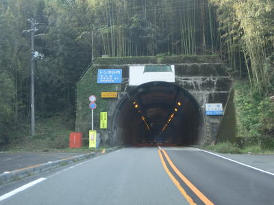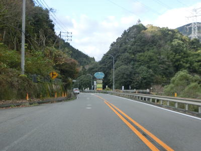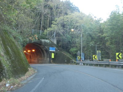 | 2ヶ所目の登坂車線区間を走っていると4.5mの制限高バーをくぐる。この規制の要因は犬寄隧道である。特別狭くはないが歩道がなく歩行者や自転車がいるようで、その旨の注意喚起の看板が設置されている。犬寄隧道を出ると3ヶ所目の登坂車線が現れる。 | ||